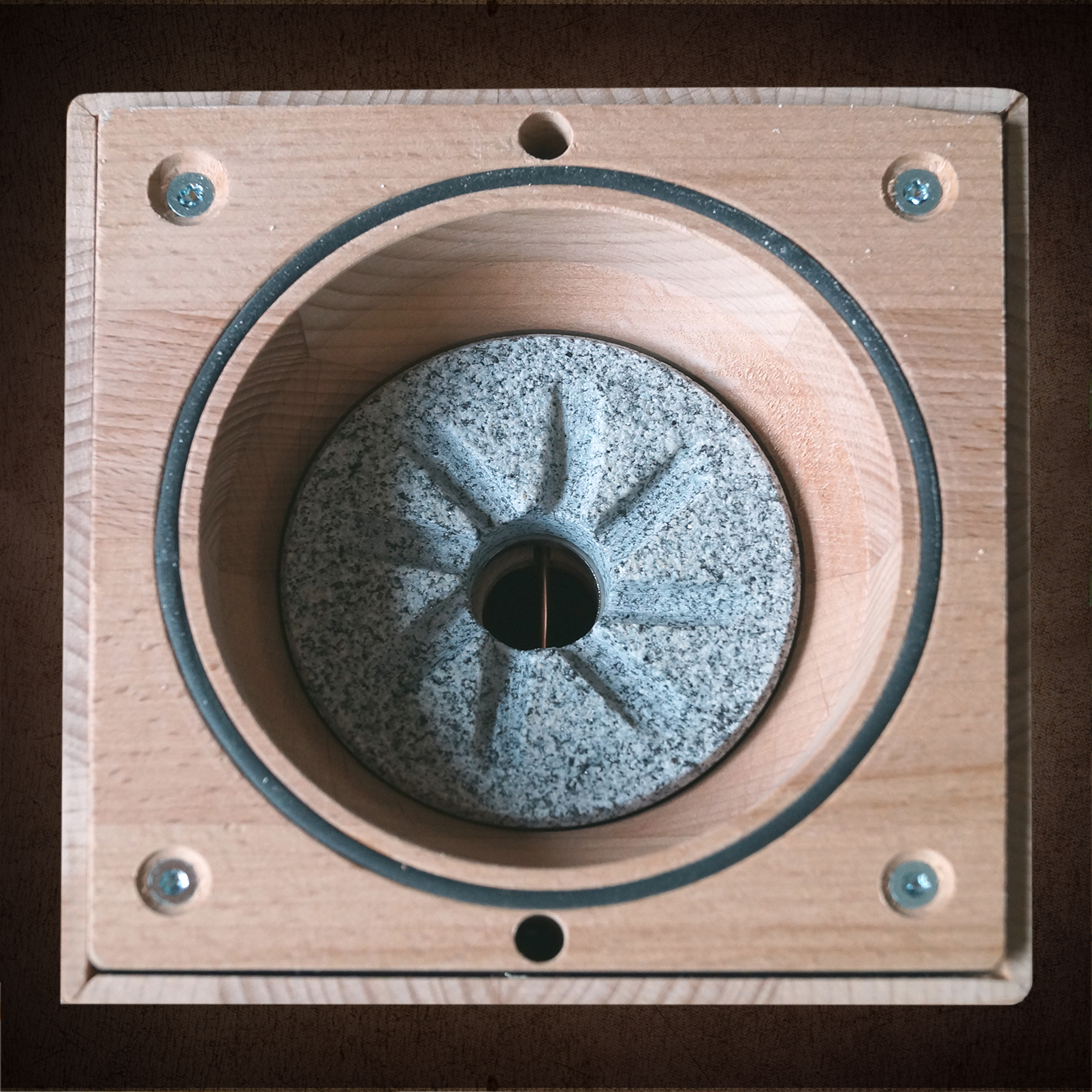 We attach great importance to a grinding chamber made of hard, untreated wood and natural granite grinding stones
