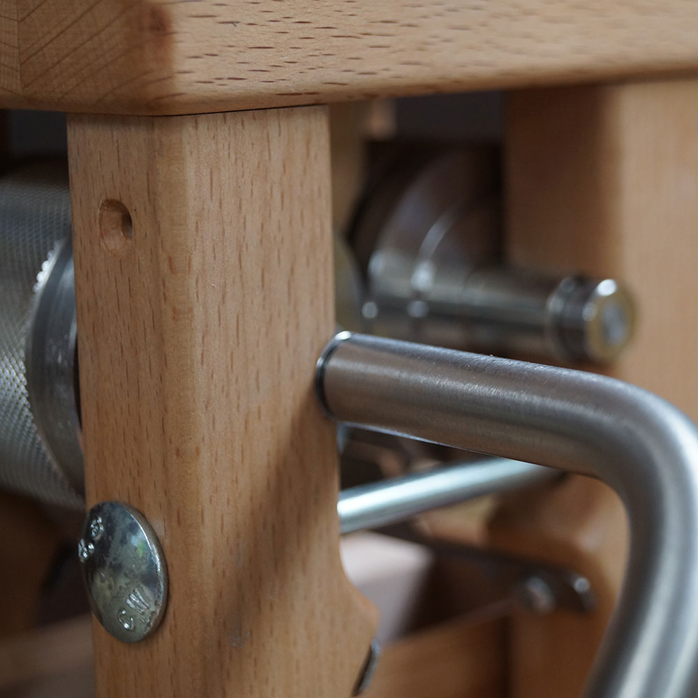 The Salzburg Master Flaker impresses with its valuable woodturning work.The housing of the flake squeezer is made from solid, local beech wood by an Austrian master craftsman.