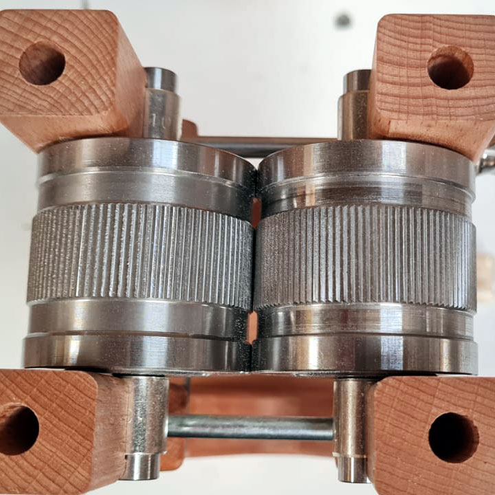 In contrast to grain mills, where stones crush the grain, we use nickel-free stainless steel rollers in our Flockenmeister .