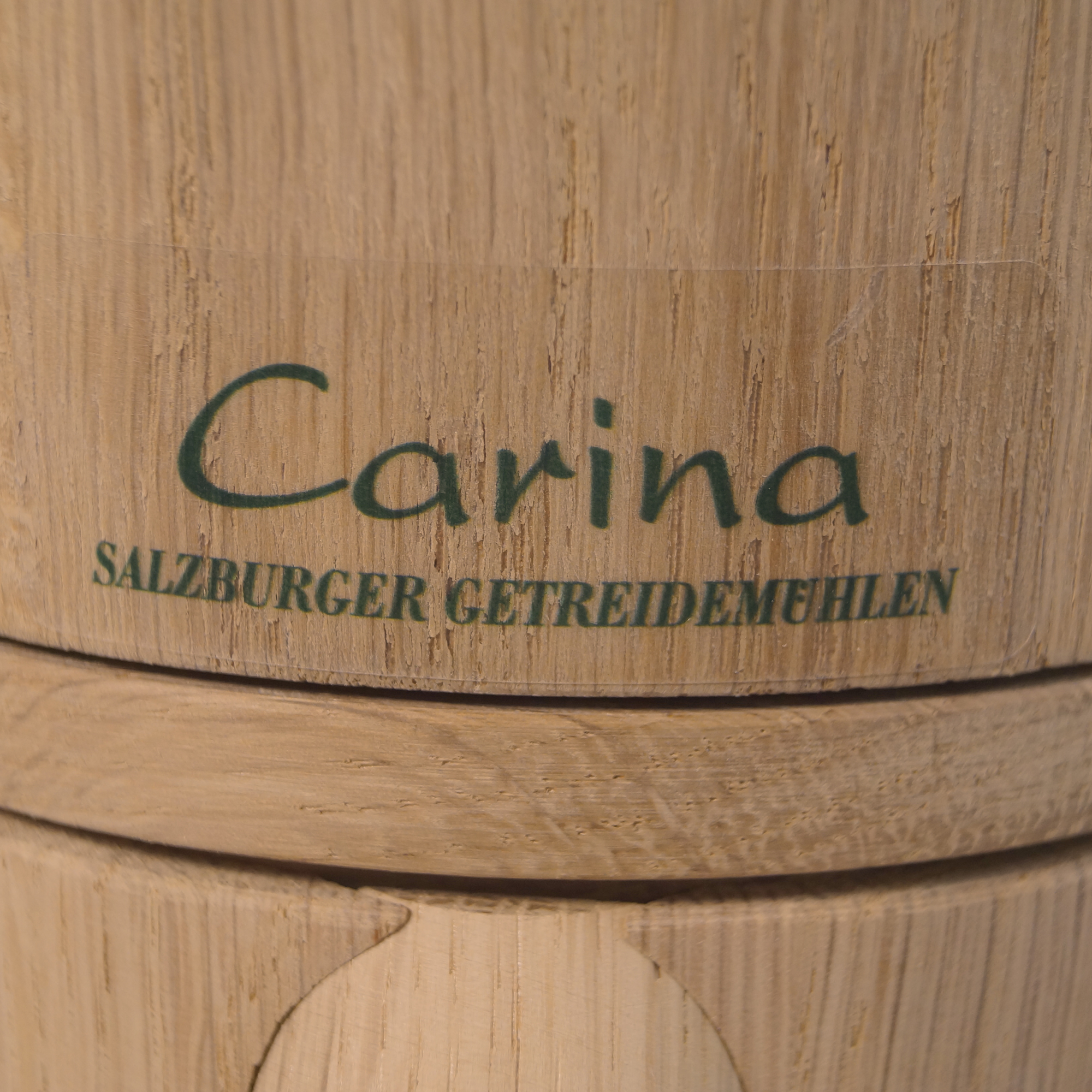 „Carina“ bedeutet auf Italienisch „hübsch, nett“ oder, aus dem Lateinischen übersetzt: wertvoll, kostbar. Eine wunderbare Kombination bei einer Getreidemühle. Carina ist mittlerweile über 20 Jahre im Einsatz, also kein Neuling mehr in der Familie der Salzburger Getreidemühlen, sondern eine erprobte, kleine Mühlen-Lady mit Stil.